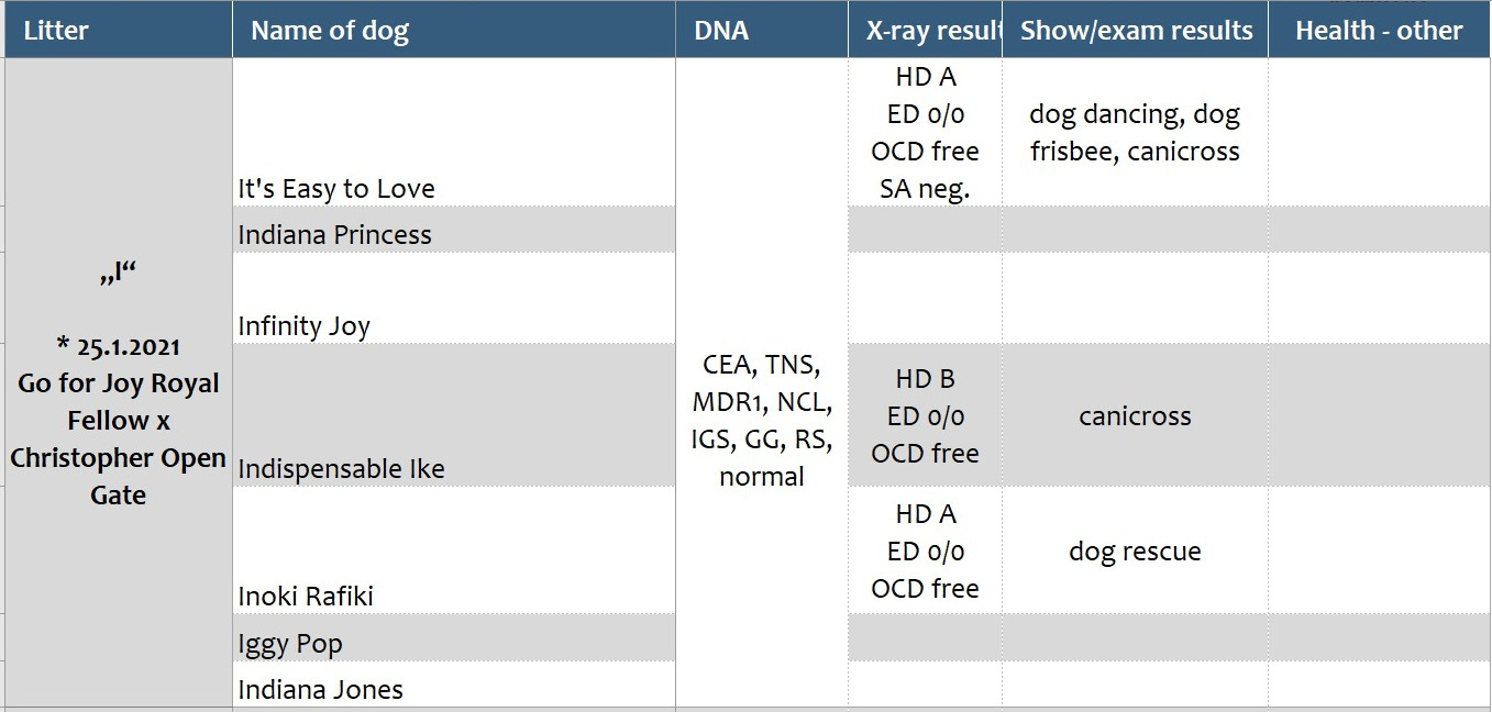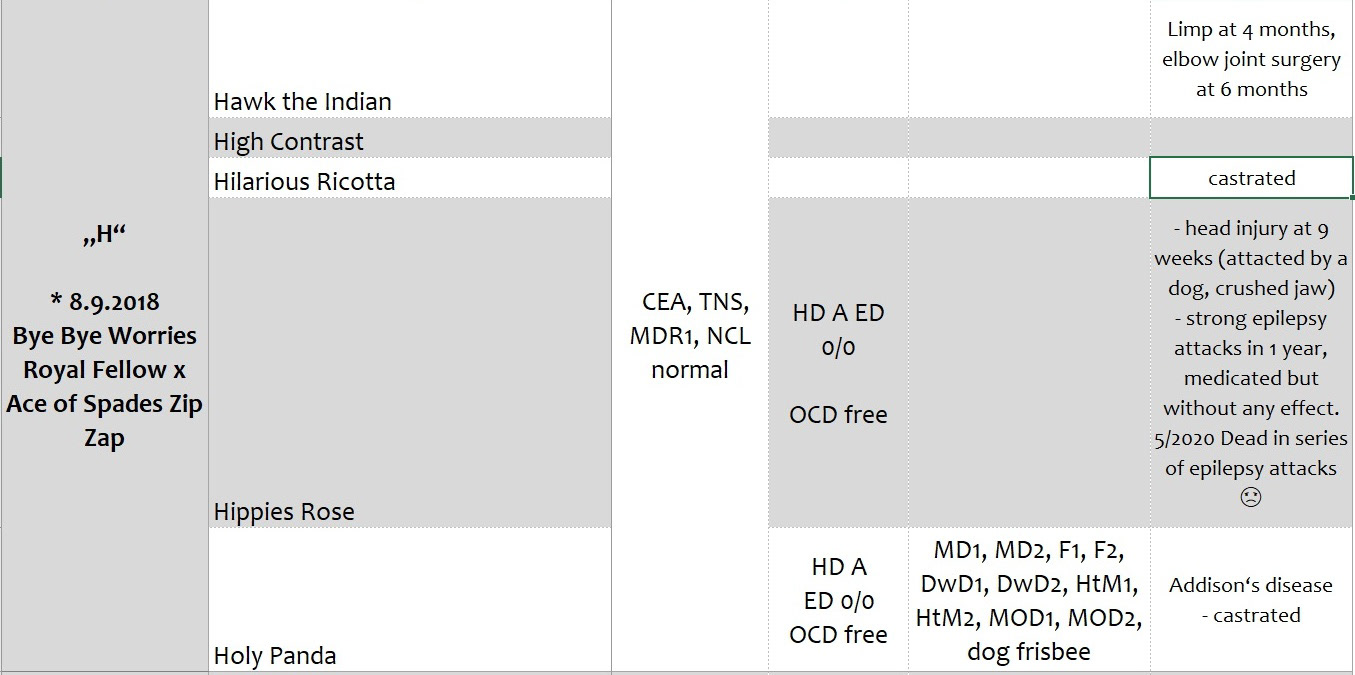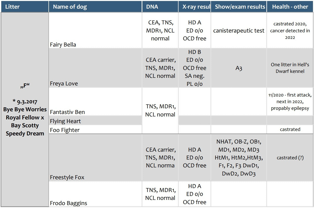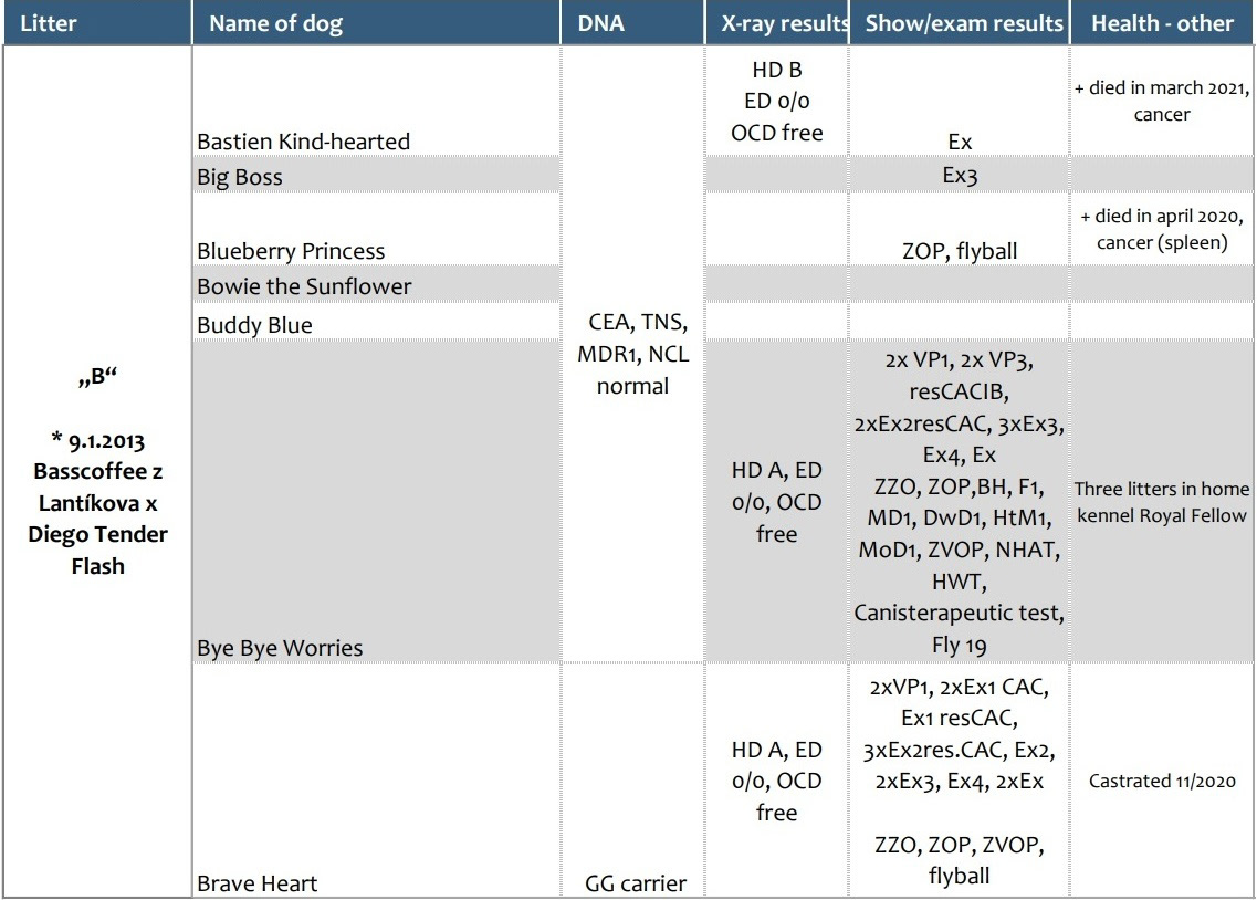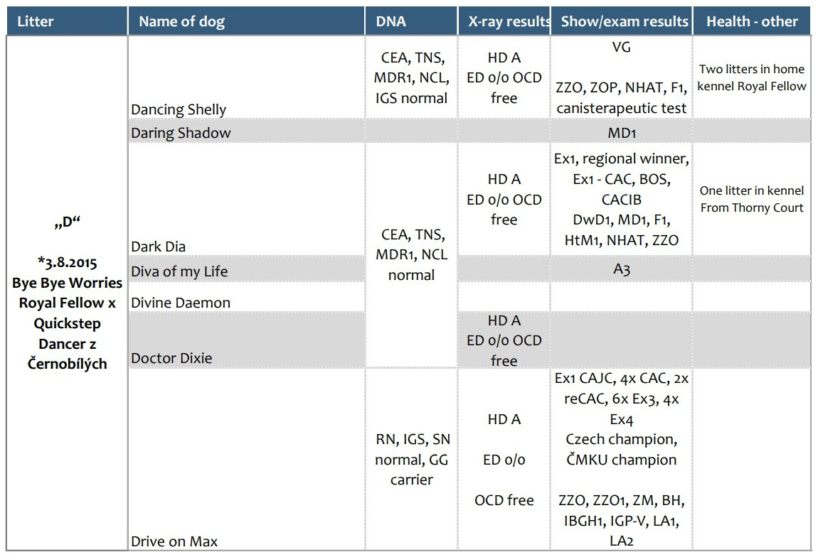 Přehled dostupných zdravotních výsledků vrhů