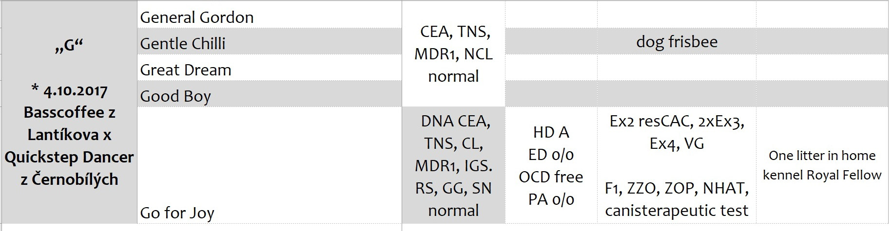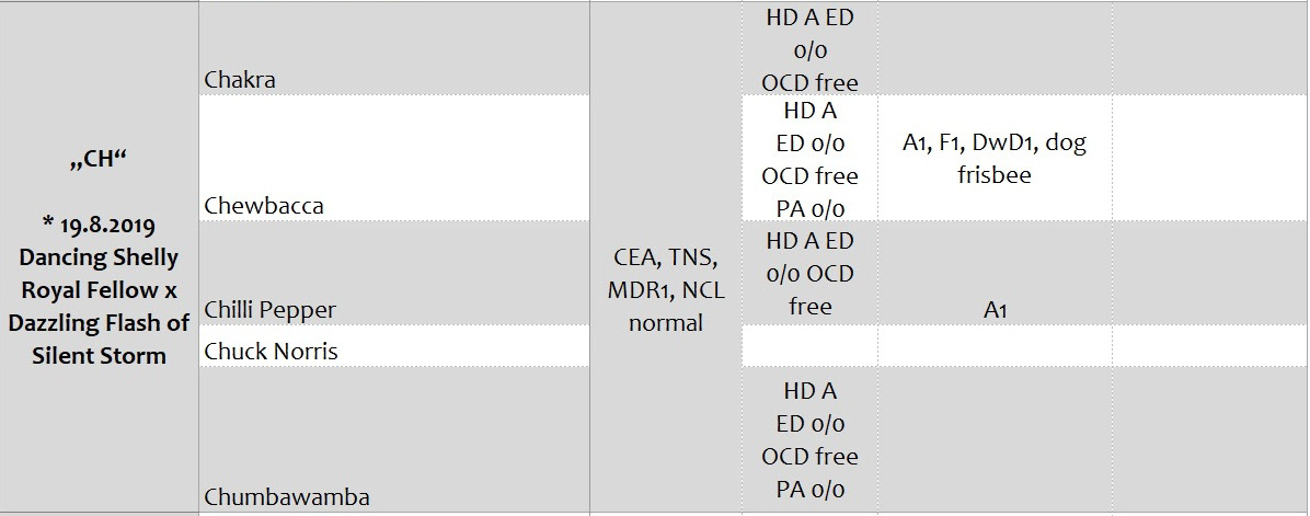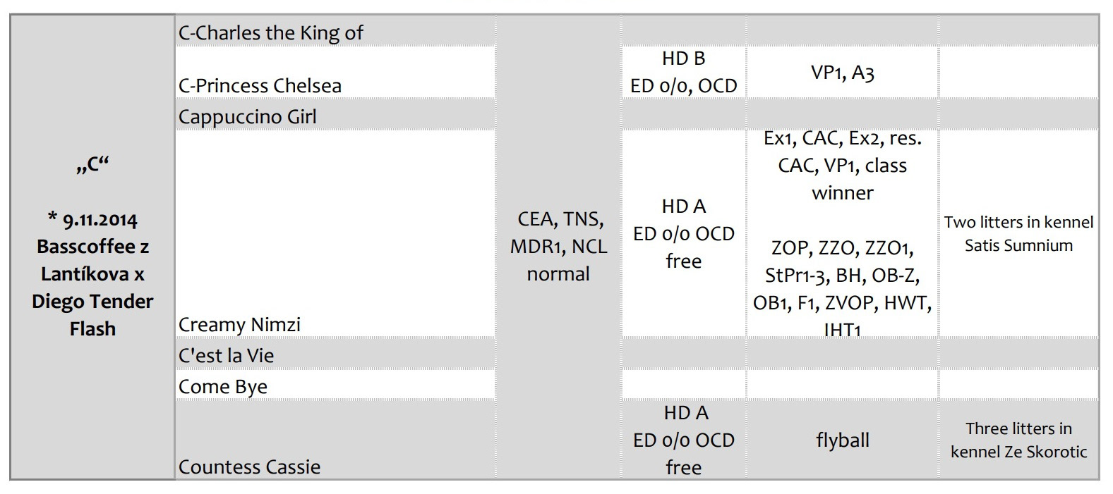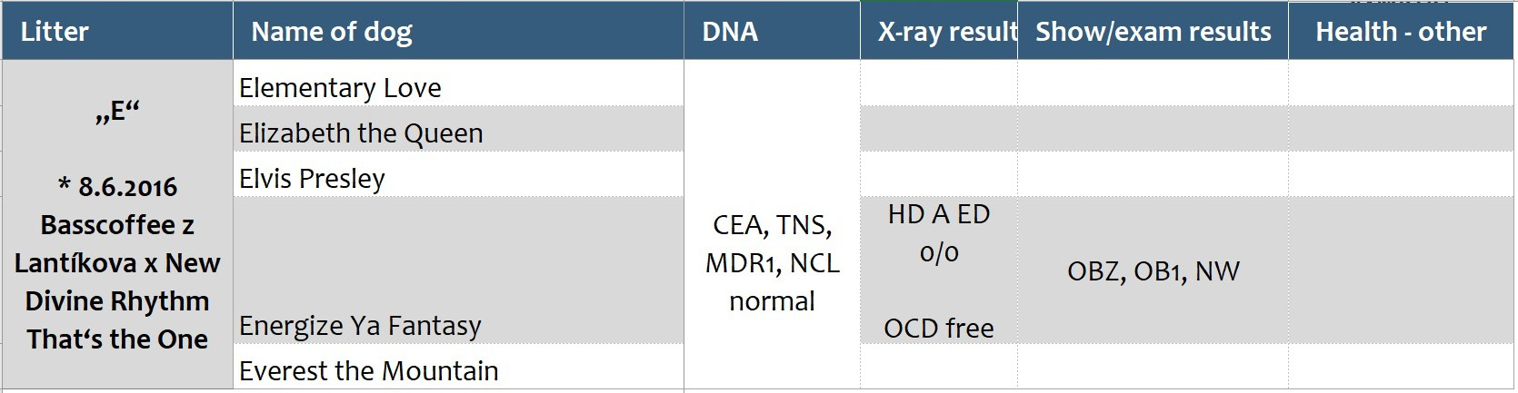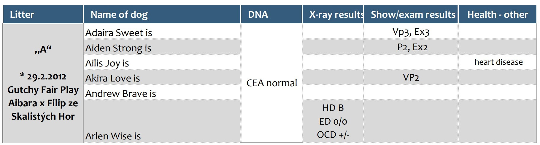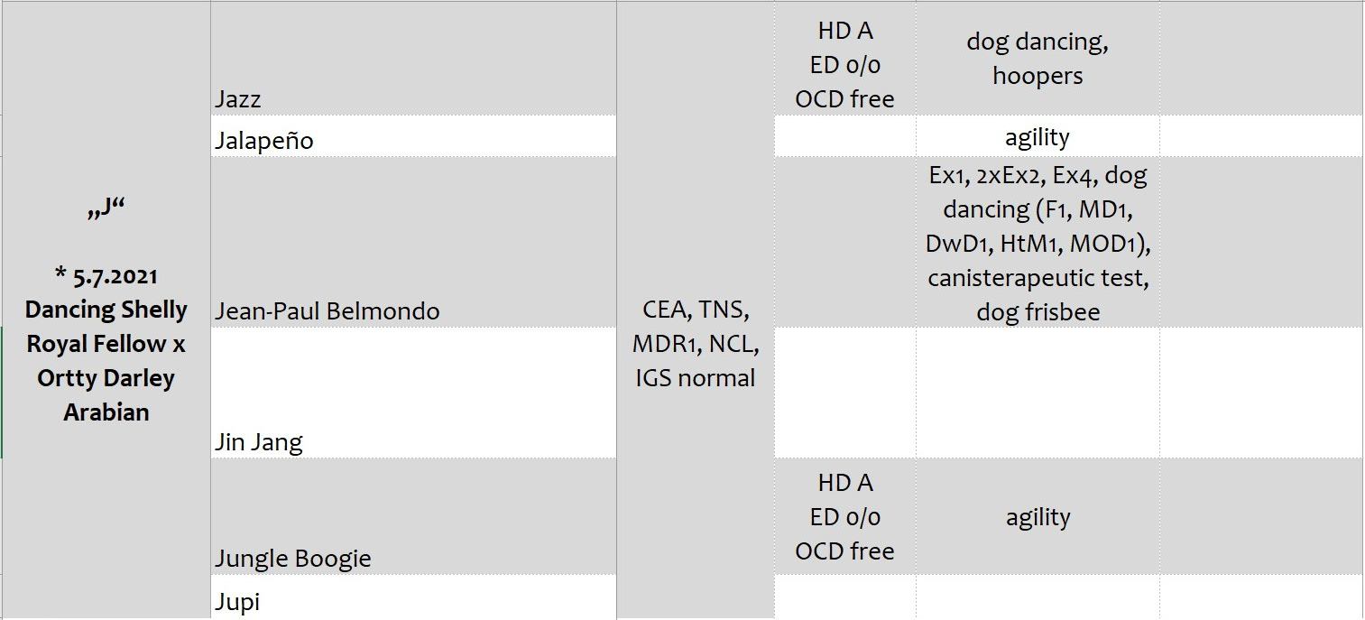 Přehled dostupných zdravotních výsledků vrhů